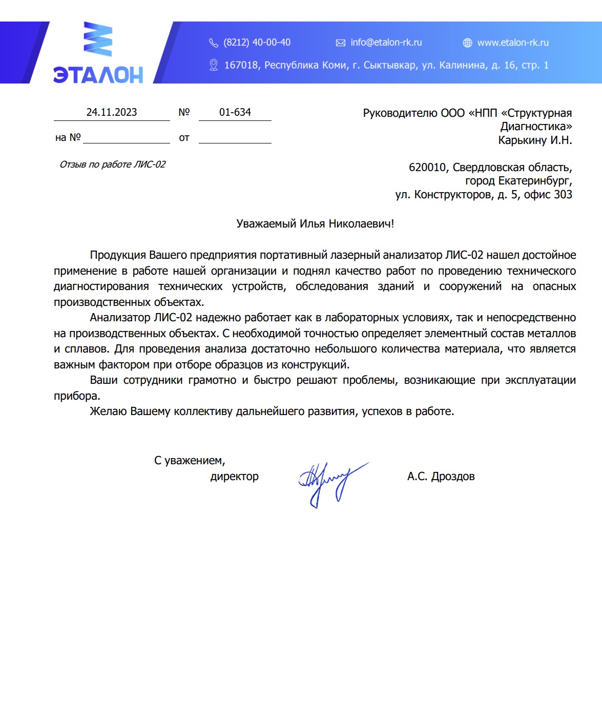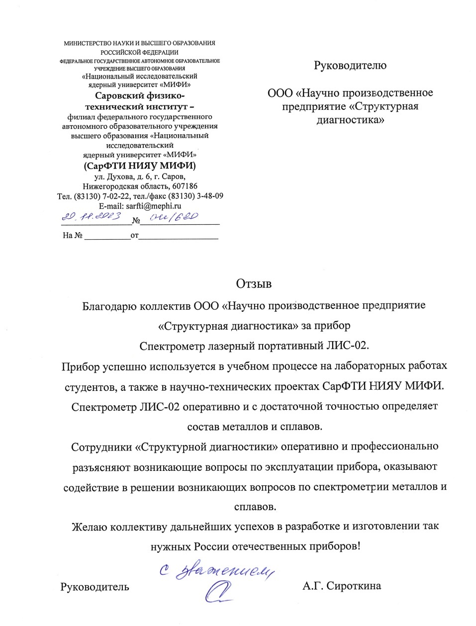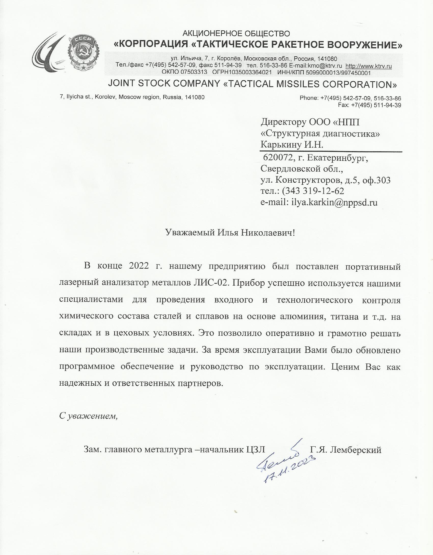 Отзыв на лазерный анализатор металлов ЛИС-02